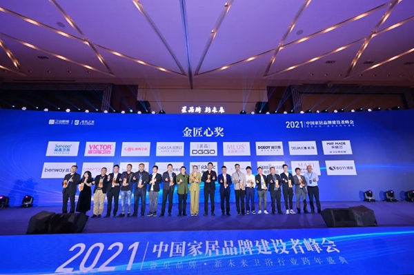 在盛典颁奖环节,“2021影响力品牌”“设计师喜爱品牌”“消费者喜爱品牌”“金匠心奖”等行业重量级榜单隆重揭晓。百世和木浴室柜凭实力成功“出圈”,一举斩获全场大奖“2021金匠心奖“!百世和木品牌总监梅浩先生获“年度品牌建设者”荣誉称号。