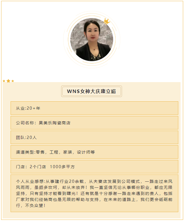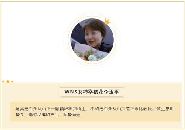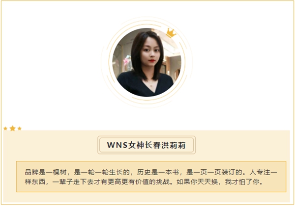 我们特别赞美这份拼搏与担当、美丽与智慧,并予以她们「维娜斯女神」称号,她们身上,流淌着女冠血脉——不甘平凡,勇于突破,并能在市场上乘风破浪、区域夺冠,;她们灵魂,燃烧着女主精神——不屑跟随,勇于创新,并能在人生里攀山越岭,实现真我!“