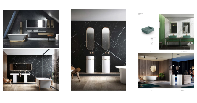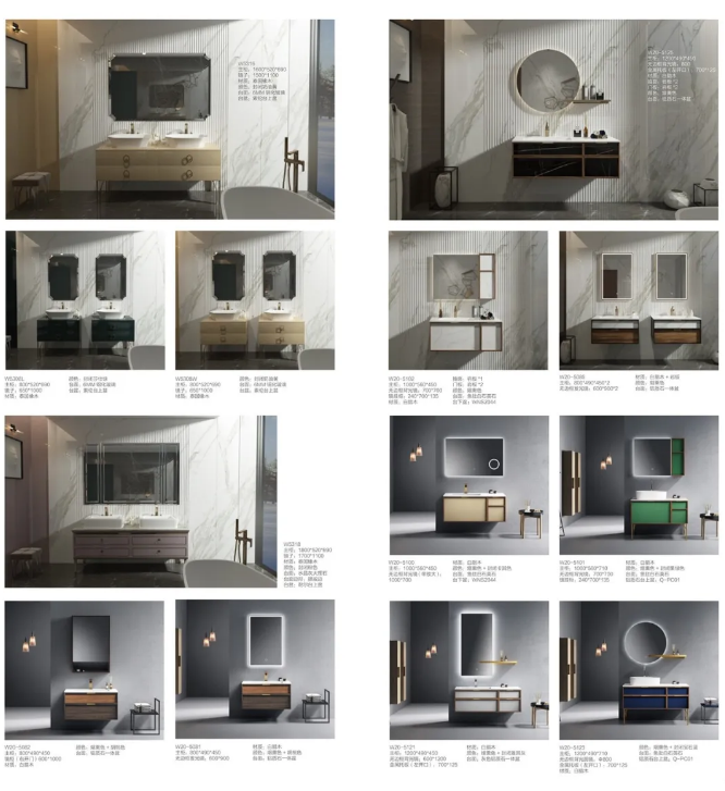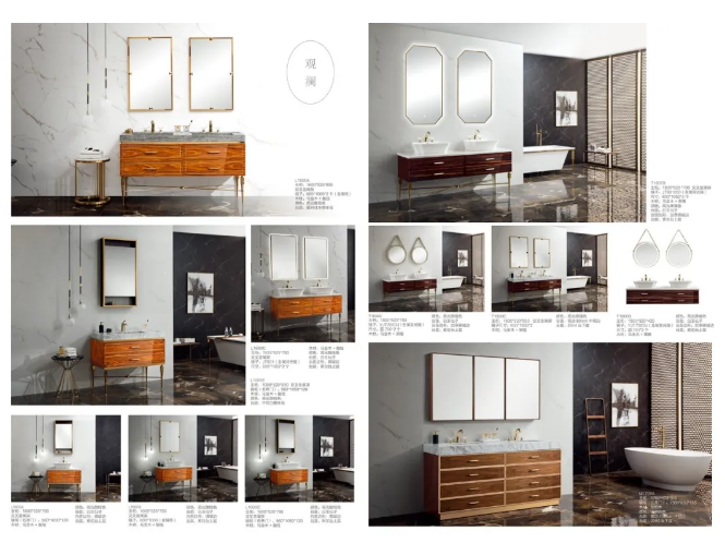 我们的产品竞争力——从实木浴室柜的强势单品,到覆盖实木浴室柜、奇美石浴缸/盆、智能触屏镜、淋浴房等大品类组合;