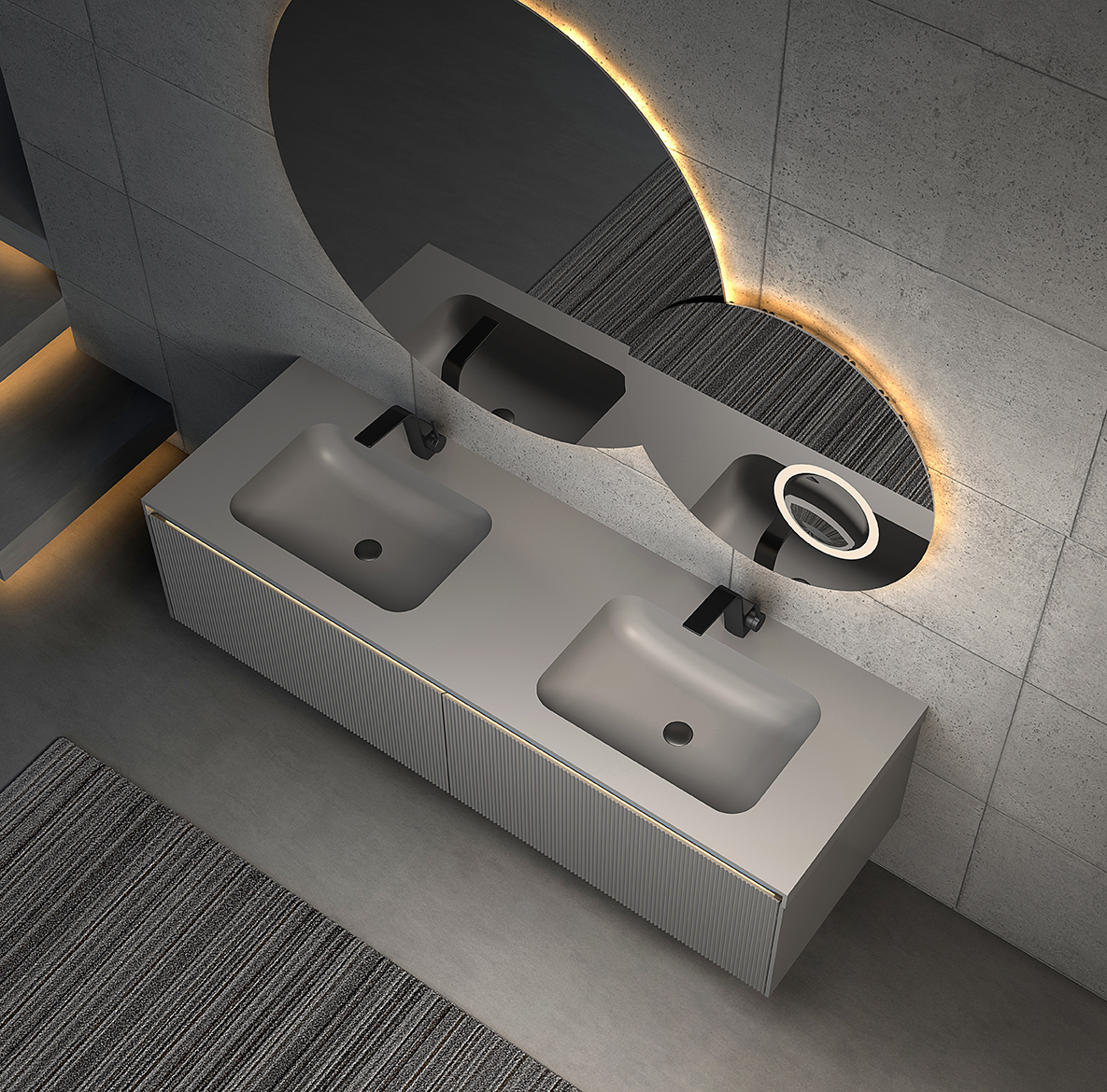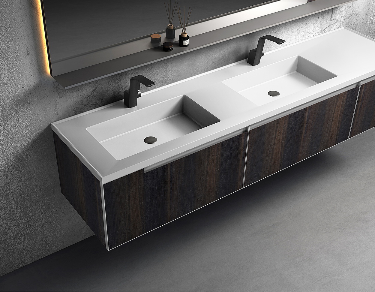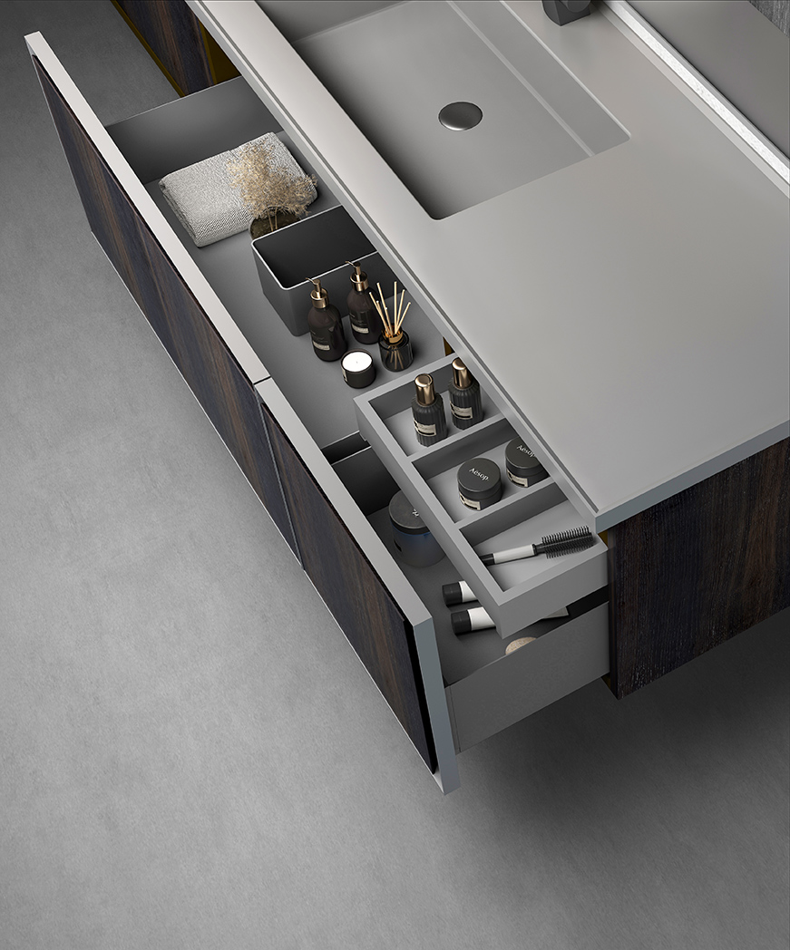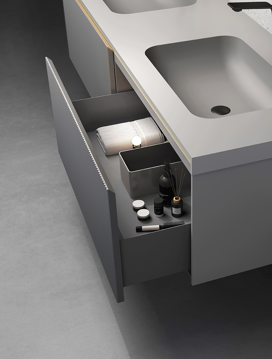 金属抽面框、镜层板:枪灰色