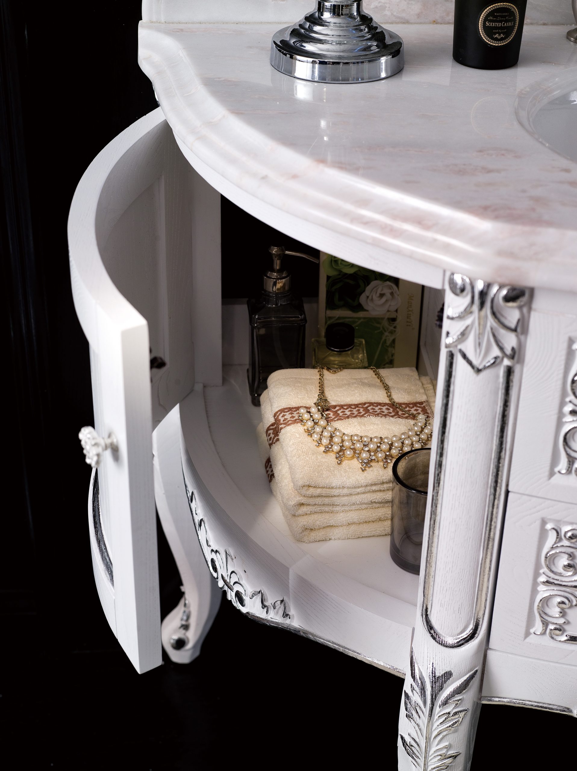主柜:1150×585×820 台面:1100×600 镜子:990×1080×40 颜色:经典白+银 木材:美国白腊木 天然大理石:玫瑰玉 台面边形:加厚经典边 台下盆:20″ 龙头+去水:K92016L